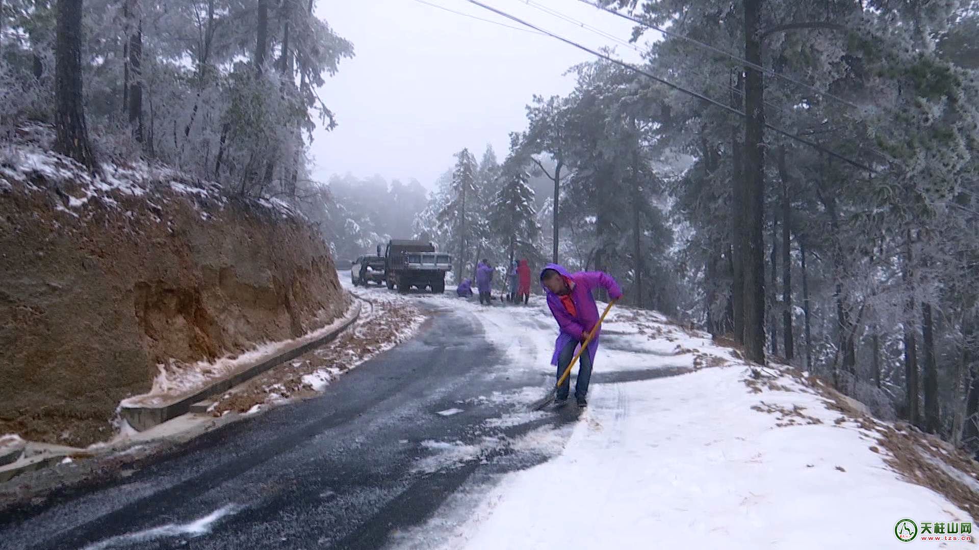 ? ? 隨即,天柱山管委會啟動應(yīng)急預(yù)案,對道路掃雪除冰工作進(jìn)行安排部署。12月8日一早,天柱山管委會組織出動應(yīng)急救援人員60余人,對重點路段拋撒了融雪劑,全面開展掃雪除冰工作,大家不畏嚴(yán)寒,揮舞著鐵鍬和掃帚,相互配合,你鏟我掃。同時市地方公路局也組織人員全力配合應(yīng)急救援人員的工作。