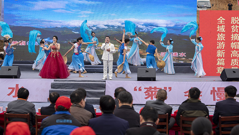 ? ? 開幕式由中共槎水鎮(zhèn)委員會、槎水鎮(zhèn)人民政府,潛山市文化委、市市監(jiān)局、市扶貧辦、市旅發(fā)委主辦?!队质且荒昃栈ㄏ恪?、《美麗槎水 我的故鄉(xiāng)》、《雛菊花》、《 物華天寶 》等歌、舞、情景劇充分展現(xiàn)槎水鄉(xiāng)村生活風(fēng)情、自然與文化魅力、山區(qū)群眾奮斗在新時代以及經(jīng)濟(jì)發(fā)展成就。一個又一個接地氣的節(jié)目,讓觀眾們看了十分過癮,掌聲不斷。