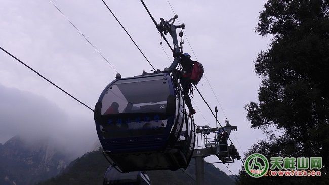 ?此次救援演練,由2名工作人員模擬游客被困在索道吊廂中。接到故障報(bào)告后,景區(qū)應(yīng)急救援指揮部迅速下達(dá)指令,救援隊(duì)、醫(yī)療急救等隊(duì)伍隨即攜帶裝備趕赴現(xiàn)場(chǎng)。2名主救人員爬上索道支架,將救援行走小車安裝到運(yùn)載索上,然后空中滑行至被困纜車,協(xié)助被困游客系好救援安全帶利用緩降繩到達(dá)地面。游客降落后,地面的醫(yī)護(hù)人員立即對(duì)游客進(jìn)行救護(hù)、心理安撫等。整個(gè)救援過(guò)程用時(shí)22分50秒。