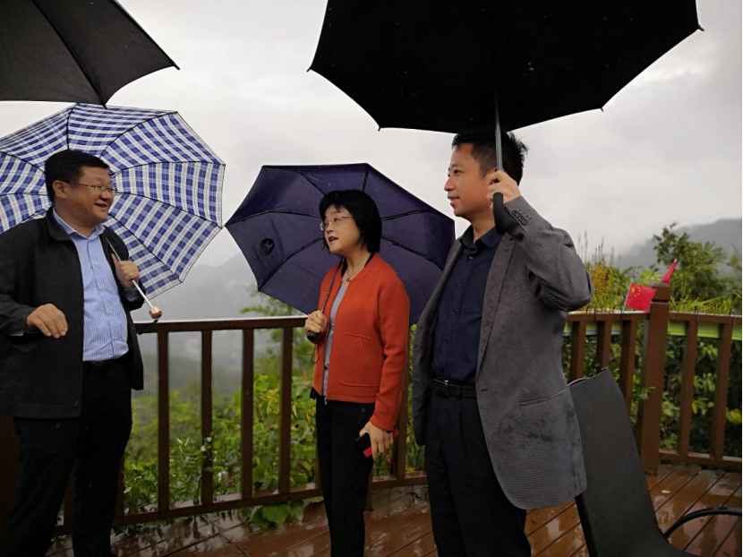 ? ??10月4日,省文化和旅游廳袁華廳長(zhǎng)采取“四不兩直”方式,輕車(chē)簡(jiǎn)從冒雨來(lái)天柱山檢查指導(dǎo)工作。