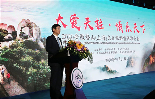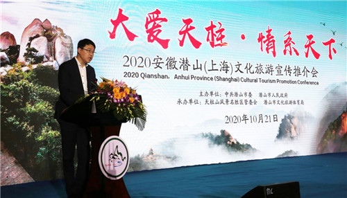人民網(wǎng)上海10月21日電? ?今天上午,由中共潛山市委、潛山市人民政府主辦的“大愛天柱 情系天下” 2020安徽潛山(上海)文化旅游宣傳推介會在上海浦東新區(qū)舉行。潛山市委書記張勁松、上海市文化和旅游局宣傳推廣處處長陳平致辭,市委副書記、市長梅耐雪推介潛山全域旅游,市委常委、天柱山風景區(qū)管委會副主任涂高生推介天柱山旅游,景域驢媽媽集團董事長、上海市安徽商會會長洪清華講話。市領(lǐng)導黃銀枝、郭玉晟、陳茜、余永燦、邵偉民、汪世平、林斗喜、蔡婷婷、程赟、趙偉出席推介會。