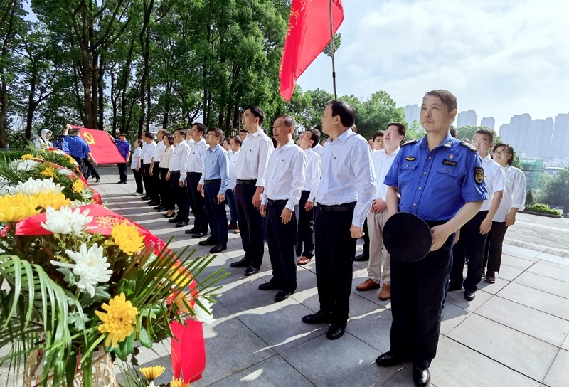 ? ? 在革命烈士紀念碑前,黨員們進行祭奠革命先烈掃墓儀式,由天柱山執(zhí)法大隊隊員敬獻花籃,市委常委、天柱山管委會副主任涂高生、天柱山管委會副主任余炳陽、市文化旅游體育局局長李桃生、天柱山旅游發(fā)展有限公司董事長汪全海整理挽聯(lián)。天柱山風(fēng)景區(qū)紀檢監(jiān)察工委書記江霞帶領(lǐng)大家重溫入黨誓詞,向烈士鞠躬致敬。