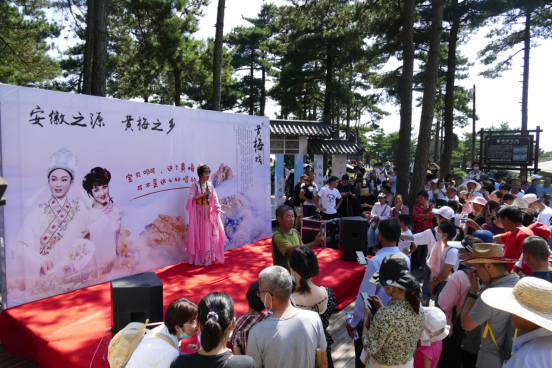 國(guó)慶期間,正值第九屆黃梅戲藝術(shù)節(jié)在安慶舉行,天柱山景區(qū)在游客中心廣場(chǎng)和景區(qū)內(nèi)開(kāi)展黃梅戲演出,讓游客在游玩之余,還能欣賞到精彩的黃梅戲表演。