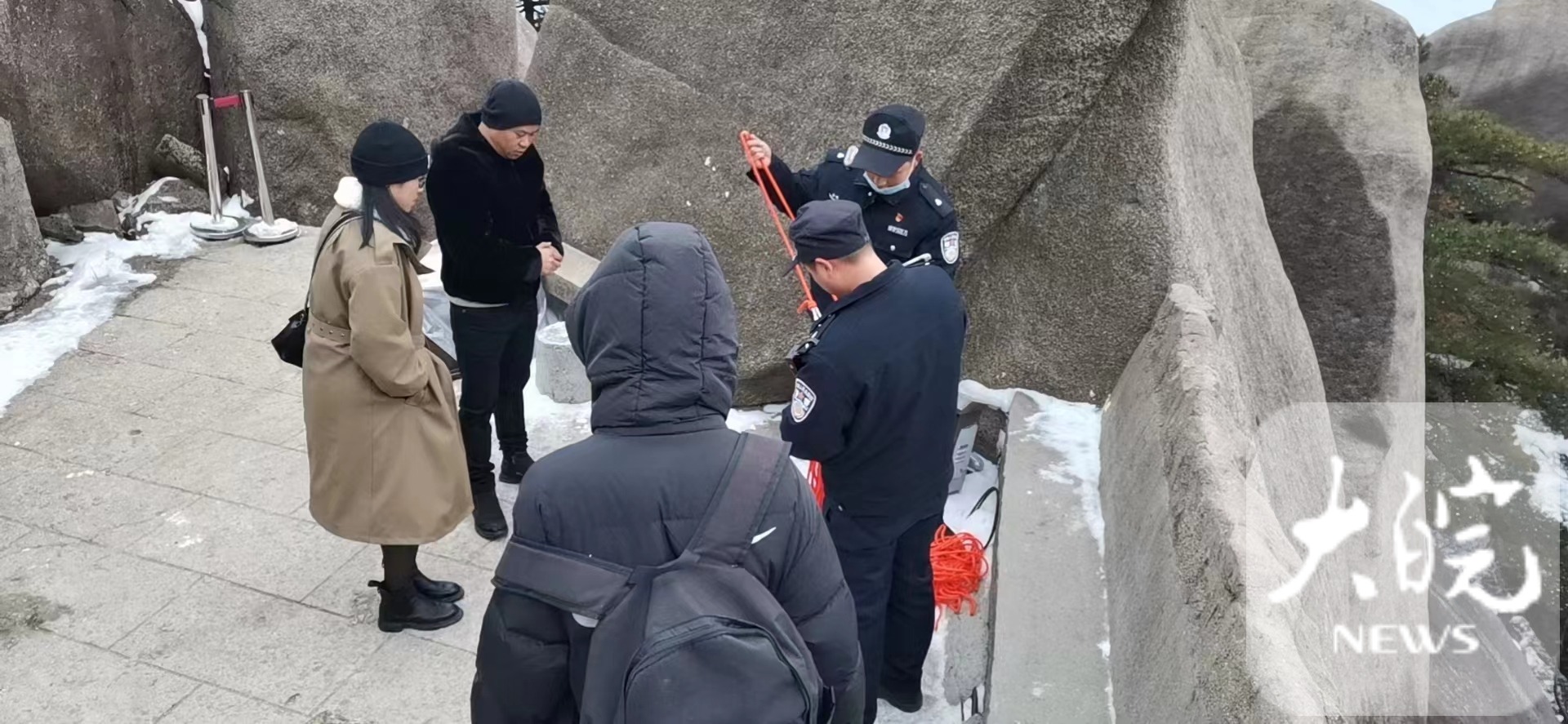 天柱山景區(qū)執(zhí)法大隊(duì)主峰景區(qū)中隊(duì)隊(duì)員葛臣第一時(shí)間趕往現(xiàn)場。經(jīng)查看,發(fā)現(xiàn)懸崖陡峭,高達(dá)10米,加上那段時(shí)間正值大雪天氣,懸崖結(jié)冰打滑,無法施救。吳女士又撥打110尋求幫助。接報(bào)后,茶莊派出所兩名輔警到達(dá)現(xiàn)場,仍無法施救。經(jīng)商議,吳英同意放棄施救,下山回到嘉興。