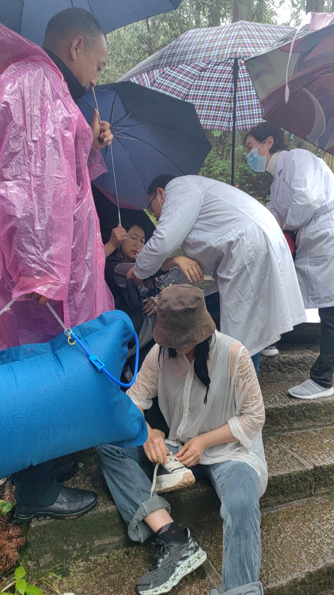 此時此刻,一場與時間賽跑的急速救援的暖心一幕,在天柱山景區(qū)真實上演。到達救援現(xiàn)場,游客高女士呈現(xiàn)心慌、四肢無力、全身發(fā)抖、不能言語、時有惡心等狀態(tài),醫(yī)生給游客認真仔細地做了檢查,表示情況十分危急,需及時到山下醫(yī)院就診。劉星第一時間撥通120急救電話,隊員汪小曲冒雨把高女士從迎真峰背負至牧羊河索道上站,路程約四五百米,然后坐索道下山并將游客抬上救護車,送往潛山市中醫(yī)院就診,稍微歇停背負的汪小曲,已累得癱軟一旁,站立不穩(wěn)。