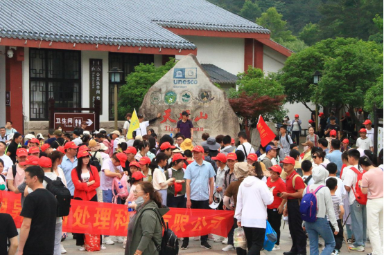 “中國旅游日”當(dāng)天,天柱山風(fēng)景區(qū)舉辦了“文明旅游、詩畫天柱、幸福中國”—全國旅游直通車萬人共攀天柱峰活動(dòng),迎來了來自省內(nèi)外直通車共計(jì)百余輛。
